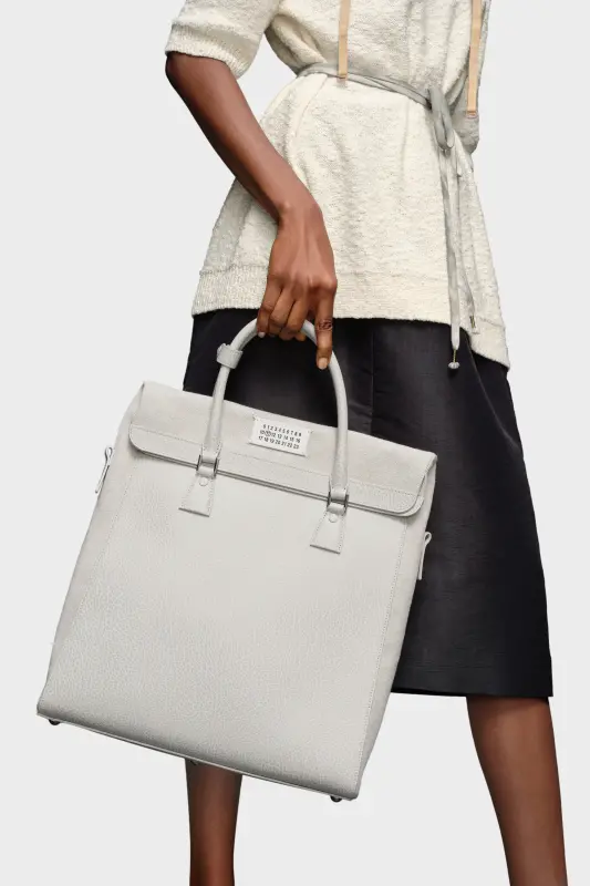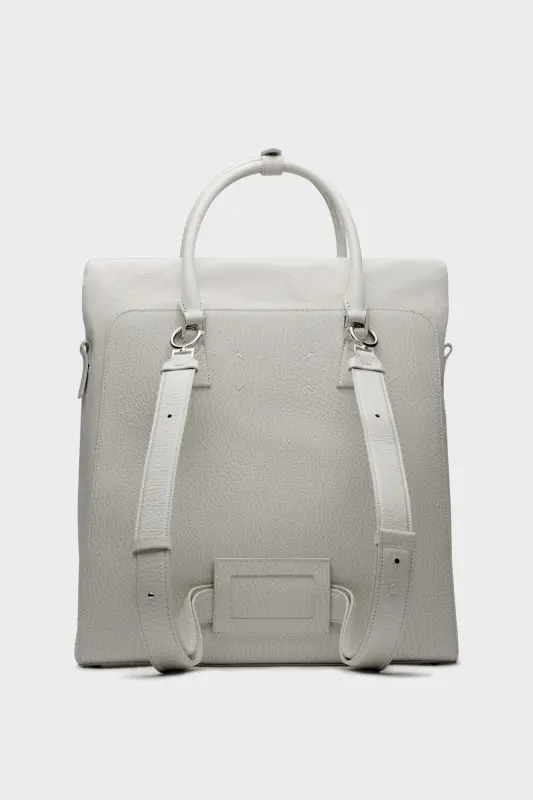 The 5AC backpack, crafted from grainy leather, features top handles and a fold-over design. It is accented with the logo label at the front. The iconic 5AC line takes its name from the French word 'sac' (bag). It explores the Maison's Anonymity of the lining concept. The bag's metal rivets are covered in leather by hand, with the metal visible only where needed, for a clean aspect. Artisanal details include the bag's exposed edges hand-painted in tone with the leather. The straps can be removed for multi-wear.