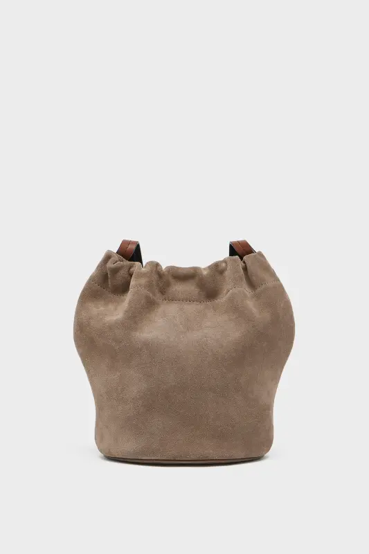 A refined take on a casual form, this bucket bag features smooth suede construction and a sculptural shape. The gathered top is secured with a drawstring fastening, while the contrast belt-inspired shoulder strap is adjustable for crossbody or shoulder wear. At the front, the Maison’s signature four stitches appear; the opposite of a label.
