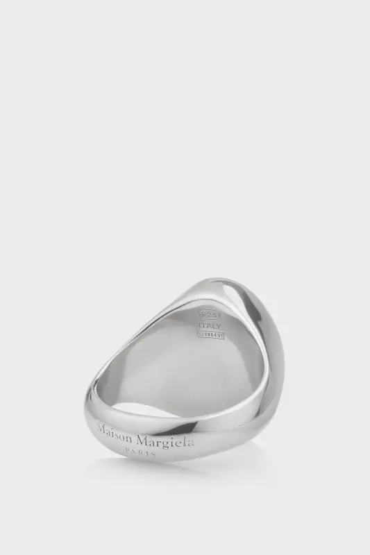 The oval chevalier ring is crafted from sterling silver, with the Maison Margiela logo on the reverse.