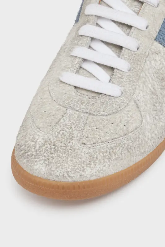 The Replica sneakers in calf leather and hairy suede with vintage treatment are supported by a classic rubber sole. The Maison's iconic Replica model is inspired by Austrian sports shoes from the seventies. Details on the Replica pairs are continually reworked in line with the season's inspirations. Maison Margiela's signature white stitch appears at the back.