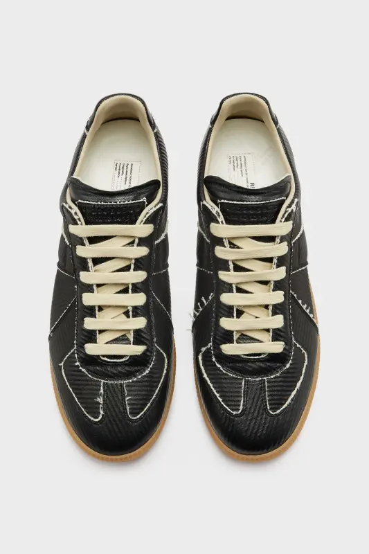 This Replica sneaker is made from bonded leather, exuding a refined yet rugged character. The contrasting stitch detailing emphasises its design, adding a modern twist to its vintage-inspired silhouette. The Maison’s iconic Replica sneakers are inspired by Austrian sports shoes from the seventies. Details on the Replica pairs are continually reworked in line with the season’s inspirations. Maison Margiela's signature white stitch appears at the back.