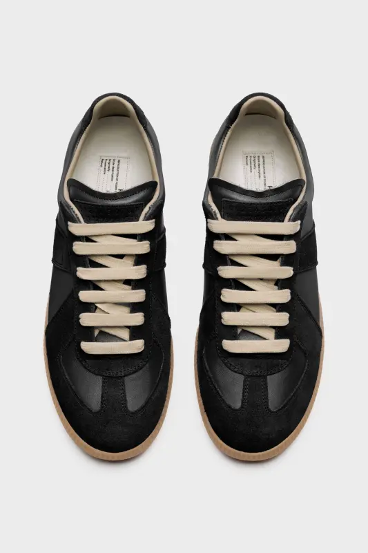 The Replica sneakers in nappa leather and suede with a honey sole. The Maison's iconic Replica sneakers are inspired by Austrian sports shoes from the seventies. Details on the Replica pairs are continually reworked in line with the season's inspirations.