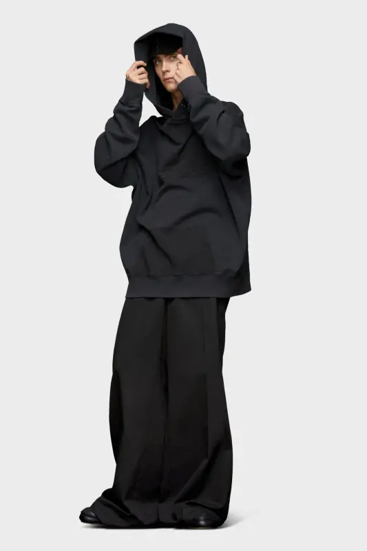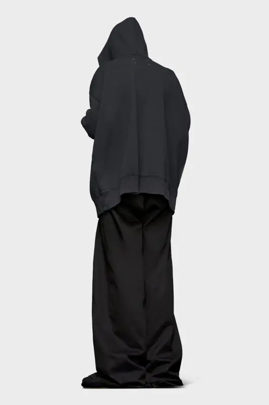 The organic cotton fleece hoodie features the new reverse logo, with reverse applicated stitch to give the impression it has been sewn and then unstitched. It comes with a missing drawstring for a minimal take and the Memory of kangaroo pocket. Maison Margiela’s signature, the Four stitches, appear at the back; the opposite of a label.