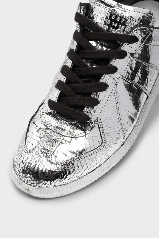 The Replica sneaker created in the broken mirror finish. The Maison's iconic Replica sneakers are inspired by Austrian sports shoes from the seventies. Details on the Replica pairs are continually reworked in line with the season's inspirations.