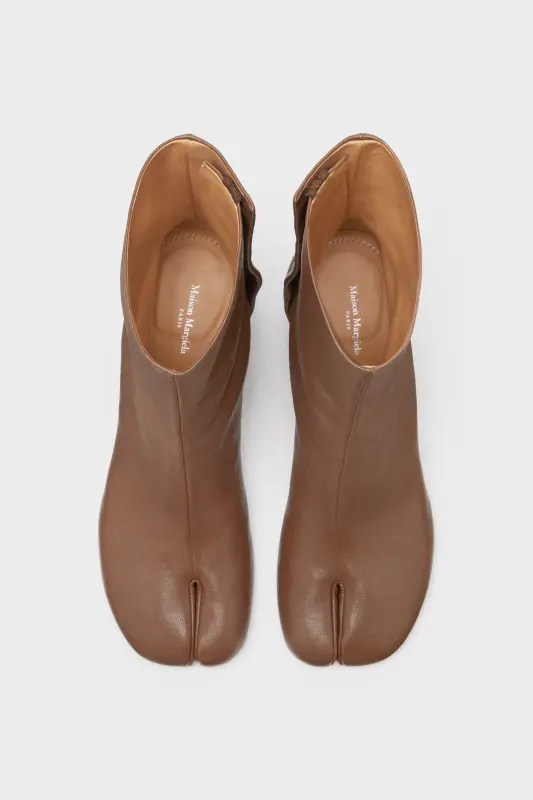 Maison Margiela Womens Brown Leather Mid-Heeled Tabi Chelsea Boots Brown